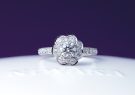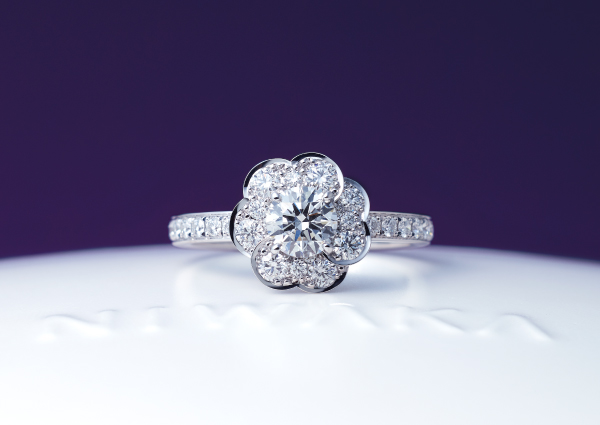 旋律を奏でるように、美しく咲き誇る花をモチーフにデザインした婚約指輪。幸せに満ち、麗かな人生を楽しむ、そんな女性の輝きをダイアモンドの花で表現しています。