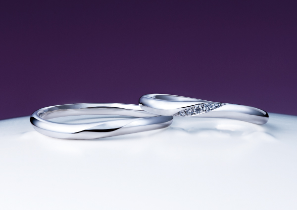 「ことば」を表す古語の「ことのは」。大切な人を想う気持ちをやわらかなフォルムで表現しています。指になじむ優しい丸みが特徴の結婚指輪です。
