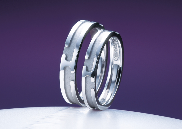 日本の絵画で、時間や場所の移り変わりを表現する文様の「霞」がモチーフの結婚指輪。その時、その場所で巡りあったふたりの奇跡をリングに込めています。